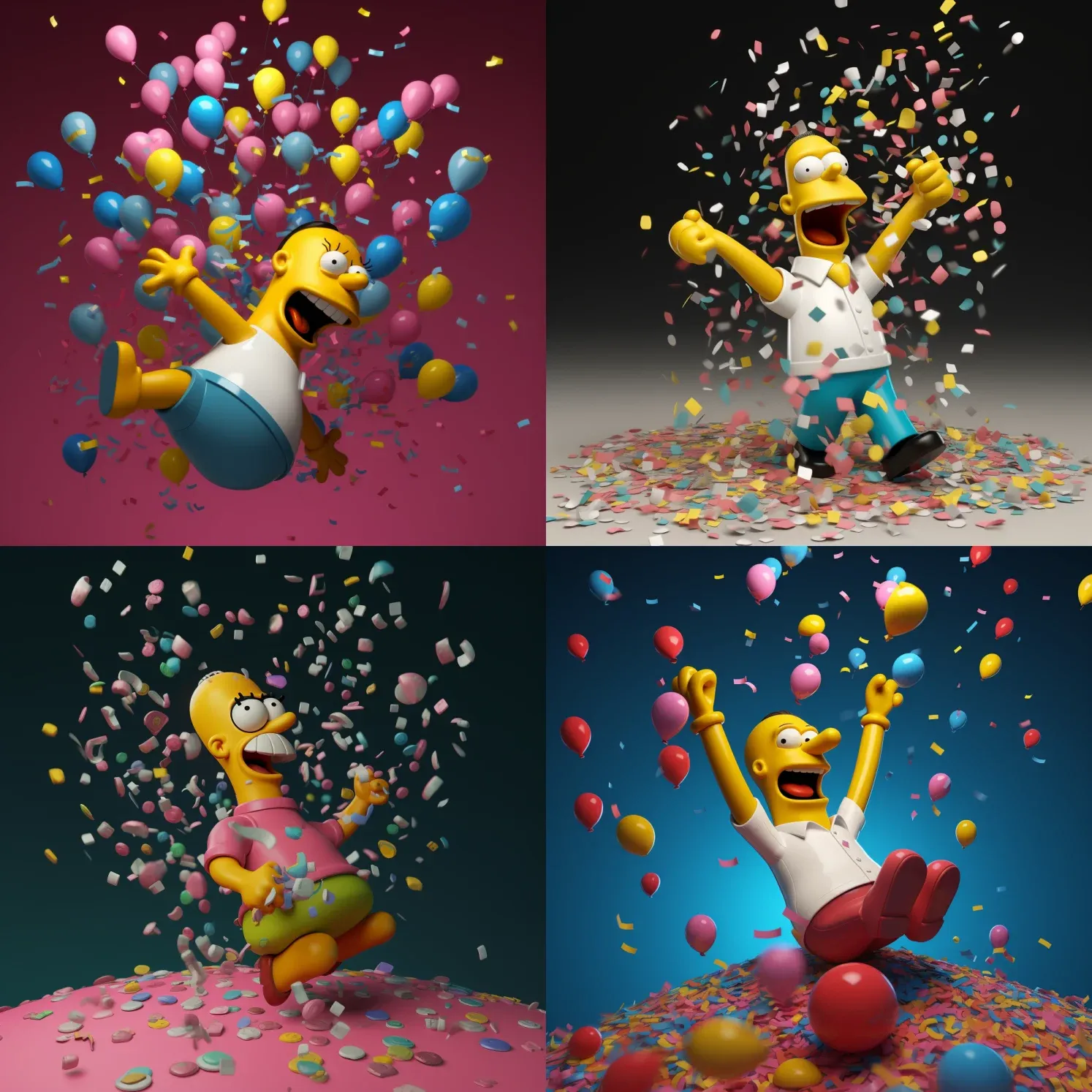 happy Homer Simpson, celebrating work anniversary, balloons, confetti, digital art, 3D, --v 5 --ar 7:4